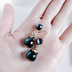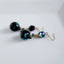 1ペアのみ☆幻想的なネコ型のとんぼ玉ビーズとチェコビーズのピアス/イヤリング(ブラック)