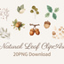 Natural Leaf & Acorn Clipart Set(ナチュラルリーフ&どんぐり素材集)20PNG
