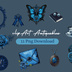 青のアンティーク小物クリップアート【全10種類/PNG】