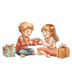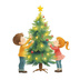 男の子と女の子、ツリー、プレゼント、リースなど