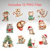 かわいいクリスマスねこクリップアート12点セット|水彩風イラスト素材・透過PNG・商用利用OK
