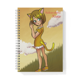 リングノート - A5 - 片面この商品はpixivFACTORYで作られた商品です。サンプル画像は完成イメージのため、実物と異なる場合があります。 黄昏時の草原にたたずむ、黄色い猫の女の子のかわいくも切ない絵を表紙にしました。 イラスト制作時間30分。 A5のリングノートです。 中身はまっさらでさらさらな無地です。