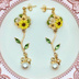 ご覧いただきましてありがとうございます。 樹脂粘土製のパーツとリーフコネクター、チャームを使用したピアスです。 ひまわり×ゴールドの金具の色味が調和した、とてもきれいなピアスです。 全長約5.8cmとちょっと長めなので、華やかさもありますよ! 写真ではスタッドピアス(サージカルステンレス)でお仕立てしていますが、お好きなパーツへの変更も無料で承ります。 ご希望のパーツを選択していただきますようお願いいたします。 サフィックス社のスウェットバリアを使用しての金属アレルギー対応も可能です。 ご希望の方は右のメニューより「金属アレルギー対策有」の項目を選んでください。 ※注意※ ☆お花のパーツは樹脂粘土でできています。性質上強い力や水濡れに弱いので、やさしいお取り扱いをお願い致します。 ☆定形外郵便でのお届けのみとなります。 【Size】 ・ブーケ:約1.4cm×1.5cm ・リーフコネクター:25mm×15mm ・リボン付きパールチャーム:1.2cm×1cm