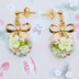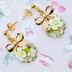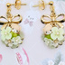 ご覧いただきましてありがとうございます。 樹脂粘土製のパーツとリボンチャームを使用した、お花とリボンの組み合わせが最高に可愛い組み合わせのピアスです。 樹脂粘土ブーケをよく見ると、ちょこんと顔を覗かせた小さなくまちゃんが…♡ 小ぶりサイズなのでマスク着脱の邪魔になりにくく、さりげなく耳元を可愛らしく彩ってくれますよ! 写真ではスタッドピアス(サージカルステンレス)でお仕立てしていますが、お好きなパーツへの変更も無料で承ります。 ご希望のパーツを選択していただきますようお願いいたします。 サフィックス社のスウェットバリアを使用しての金属アレルギー対応も可能です。 ご希望の方は右のメニューより「金属アレルギー対策有」の項目を選んでください。 ※注意※ ☆お花のパーツは樹脂粘土でできています。性質上強い力や水濡れに弱いので、やさしいお取り扱いをお願い致します。 ☆定形外郵便でのお届けのみとなります。 【Size】 ・ブーケ:約1.4cm×1.4cm ・リボンチャーム:11mm×17mm