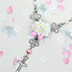 552 いちごミルク色の苺ブーケミニロザリオネックレス