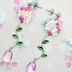 ご覧いただきましてありがとうございます。 樹脂粘土製のパーツとリーフコネクター、ガラスビーズを使用しています。 りんごとガラスビーズのピンクにリーフコネクターの緑、金具の色味が調和した、とてもきれいなピアスです。 全長約6.3cmとちょっと長めなので、華やかさもありますよ! 写真ではスタッドピアス(サージカルステンレス)でお仕立てしていますが、お好きなパーツへの変更も無料で承ります。 ご希望のパーツを選択していただきますようお願いいたします。 サフィックス社のスウェットバリアを使用しての金属アレルギー対応も可能です。 ご希望の方は右のメニューより「金属アレルギー対策有」の項目を選んでください。 ※注意※ ☆お花のパーツは樹脂粘土でできています。性質上強い力や水濡れに弱いので、やさしいお取り扱いをお願い致します。 ☆定形外郵便でのお届けのみとなります。 【Size】 ・ブーケ:約1.5cm×1.7cm ・リーフコネクター:25mm×15mm ・雫形ガラスビーズ:13mm×8mm