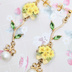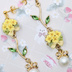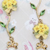 ご覧いただきましてありがとうございます。 樹脂粘土製のパーツとリーフコネクター、チャームを使用したピアスです。 ブーケ×ゴールドの金具の色味が調和した、とてもきれいなピアスです。 全長約6cmとちょっと長めなので、華やかさもありますよ! 写真ではスタッドピアス(サージカルステンレス)でお仕立てしていますが、お好きなパーツへの変更も無料で承ります。 ご希望のパーツを選択していただきますようお願いいたします。 サフィックス社のスウェットバリアを使用しての金属アレルギー対応も可能です。 ご希望の方は右のメニューより「金属アレルギー対策有」の項目を選んでください。 ※注意※ ☆お花のパーツは樹脂粘土でできています。性質上強い力や水濡れに弱いので、やさしいお取り扱いをお願い致します。 ☆定形外郵便でのお届けのみとなります。 【Size】 ・ブーケ:約1.5cm×1.4cm ・リーフコネクター:25mm×15mm ・リボン付きパールチャーム:1.2cm×1cm