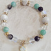 ご覧いただき、ありがとうございます。 アスフェルド学園のフウキの男子達をイメージした天然石使用のブレスレットです。 イメージカラーのクリスタル付きです。 ■サイズ 手首周り約17cm ■素材 ミラン:ハウライト、アマゾナイト、トルマリン入り水晶、カーネリアン白、貴和クリスタル(ホワイトオパール) アイゼル:赤メノウ、アメジスト、ブルーサンド、カーネリアン橙、貴和クリスタル(スカーレット) リソル:アメジスト、カルセドニー、タイガーアイ、アメジスト小、貴和クリスタル(アメジスト) 共通 カット水晶(8mm) ルナフラッシュ白(8mm)※在庫ある分のみ。次チェコガラスビーズ(ラウンドAB)になります。 ロンデル(ゴールド、ロジウム) メタルパーツ(ゴールド、ロジウム) 貴和クリスタル(8mm) 石座カン付(8mm用) スーパーアンタロン(ゴム) ※お使いの端末や閲覧環境により、写真と実物の色味や質感が多少異なって見えることがございます。 ■購入の際の注意点 ☆金属アレルギーの方はご利用をお控えください。 ☆ハンドメイドのため、デリケートに出来ており、市販品・既製品ほどの強度はないため、使用を重ねることにより破損する場合がございます。 ☆1つ1つ手作業で制作しているため、色や形に若干の違いがある場合がございますのでご了承ください。 ☆天然素材を使用しているため、個体差があります。 ☆防水加工ではないので、水に触れないようご注意ください。 ■発送について あんしんBOOTHパック ネコポスで発送予定。 基本1~7日で発送させて頂きます。