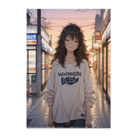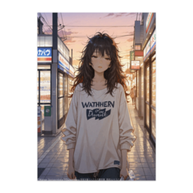 ポスター - B2この商品はpixivFACTORYで作られた商品です。サンプル画像は完成イメージのため、実物と異なる場合があります。 夕暮れの帰り道、コンビニ袋を片手にぼんやり歩く大学生。 疲れも安心も少し混ざったような表情が、静かな日常の一瞬を切り取ります。 ノヴァフラットXLで描かれた柔らかな色調と光の陰影が心地よい、 “Beige Days ― もっさり大学生の日常” シリーズの第1作です。