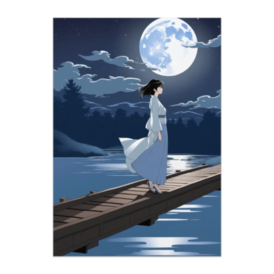 ポスター - B2この商品はpixivFACTORYで作られた商品です。サンプル画像は完成イメージのため、実物と異なる場合があります。 満月の夜、静かな橋の上で佇む女性。風と光が語りかけるような幻想的な夜のポスター。