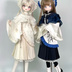 【1/4】1/4ドール服 于七页序 漢服風 中華ロリータ 仙女風 和風中華 フリル レース ケープ スカート 耳飾り アクセサリー BJD服 4分ドール衣装 改良チャイナ 刺繍風 竹柄 清楚 淑女風 白 紺 ブラック ホワイト 立ち襟 盤扣 リボン