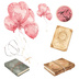 【全12種】水彩&色鉛筆タッチ*アンティークピンクの旅モチーフクリップアートセット