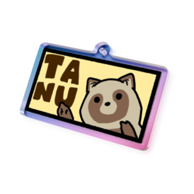 TANUを指さすたぬきキーホルダー(オーロラ)