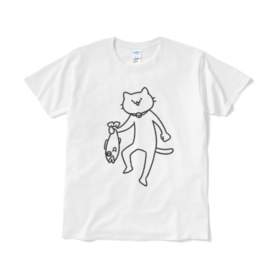 【デカねこ】魚を持ち帰る猫(大プリント/線画)Tシャツ - S - ホワイトPhysical (pixivFACTORY)2,210 JPY
