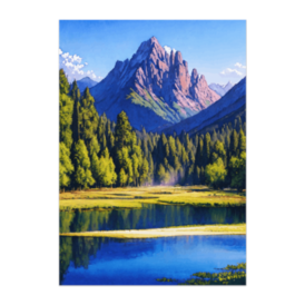 ポスター - B2この商品はpixivFACTORYで作られた商品です。サンプル画像は完成イメージのため、実物と異なる場合があります。 深い緑の木々と静かな水面が織りなす、心洗われる楽園の風景。空と山が溶け合うような透明感が魅力です。
