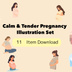 「やさしいマタニティイラストセット|陣痛・破水・お腹の張りなど症状別フラットベクター」