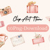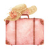 水彩ピンクのアンティーク旅行クリップアートセット(全10種/PNG)