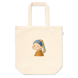 トートバッグ - M - プリント面積小ヨハネス・フェルメール 真珠の耳飾りの少女をゆるっと絵柄にしました。 この商品はpixivFACTORYで作られた商品です。サンプル画像は完成イメージのため、実物と異なる場合があります。