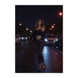 ポスター - B2この商品はpixivFACTORYで作られた商品です。サンプル画像は完成イメージのため、実物と異なる場合があります。 ネオンライトの下、夜の街で軽やかにステップを刻む女性。 強さと自由を感じさせる、スタイリッシュな都会の瞬間を切り取ったポスターです。