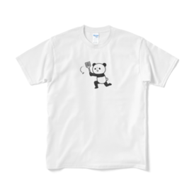ハエを追い回すパンダ(小プリント/線画)Tシャツ