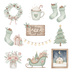 水彩画風クリップアートセット【[テーマ名:例:ふんわりクリスマス/ボタニカルライフ]】(PNG形式)