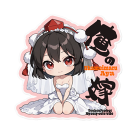 ステッカー - 160 x 160 (mm)(キャラのみ)💍💖🔑【東方ファン必見!】文ちゃんが「俺の嫁」に!永遠の愛を誓います💍 💖東方Project 射命丸文は俺の嫁 ステッカー💍💖 愛しの射命丸文が、純白のウエディングドレス姿で、あなただけの「嫁」に💖 『東方Project』より、初々しいスポイラー記者、姫海棠はたて(ひめかいどう はたて)が、純白のウエディングドレス姿であなたの部屋に登場!このアクリルフィギュアは、あなたとの結婚という最高のニュースを形にしたものです。 あの最強の天狗が、キュートなチビキャラになって登場!大きな瞳に宿るのは、あなたへの永遠の愛の誓い。この可愛さは、あなたの心を鷲掴みにすること間違いなし。 チビキャラになっても最強の可愛さ!永遠の愛の誓いを込めて、あなたのそばにずっと一緒! 今すぐBOOTHで「永遠の愛」をゲット!https://2ams-family.booth.pm/ リンクはツリーにポストしているよ🤩✨ この商品はpixivFACTORYで作られた商品です。サンプル画像は完成イメージのため、実物と異なる場合があります。