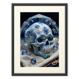 複製画(プリモアート) - A3蒼碧の光に包まれた髑髏が、静謐な美を湛える。 繊細な金糸の模様と白花の装飾が、高貴で神聖な存在感を放つ。 見る角度によって表情を変える、透明感と荘厳が共存する一枚。 永遠の静寂を描いた、THE AURAの新たなる象徴。 Bathed in azure radiance, the skull emanates a serene and sacred beauty. Golden embroidery and white blossoms create a vision of divine purity and elegance. A masterpiece of transparency and reverence that shifts with the light. The new emblem of eternal silence in THE AURA collection. Pixivファクトリーで作成された商品です。実際の商品は画像と異なる場合があります。 English: This product is created through Pixiv Factory. Actual product appearance may differ slightly from the images shown. — THE AURA Official Art Collection