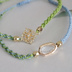 実弥さんの日輪刀の鍔の形に似た六角形のガラスパーツを使い、ワックスコードブレスレットに仕立てました。 片方のコードは実弥さんの激しく荒々しい、回転しながら繰り出されるような技をイメージしてねじり編み🌪️ もう片方のコードはさねぎゆカラーをミックスし、ねじり編み&平編みにしています。 細めのコードを使用しているため、よりさりげなく推しアイテムとして身につけていただけます✨ お守りのように、毎日推しカラーを身につけてすごしませんか?🥰💚💙 *ワックスコード(ロウ引き)の素材なので、ある程度水に濡れても大丈夫ですが、入浴などの際には外してください。 *付け始めはコードが少々硬く感じられる場合がありますが、数回の使用で馴染んで柔らかくなります。 *前回頒布したもの(♾️マークのもの)より、ひとまわり細いコードを使っています(📸5枚目参照) *重ね付けもおすすめです✨ (📸6枚目参照) *仕入れ等の都合により、写真のパーツとは軽微な違いのあるパーツを使用する可能性があります。デザイン全体に大きな影響はありませんので、何卒ご了承ください。 *オーダーをいただいてからひとつひとつ編み上げるため、発送までにお時間をいただきますことをご了承ください。