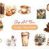 アンティークカフェ クリップアートセット(12種・水彩風PNG)