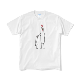 【長細鶏】ゆるい親子にわとりTシャツ - S - ホワイト