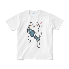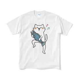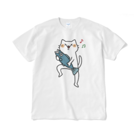 【デカねこ】魚をゲットして嬉しい猫(大プリント/カラー)Tシャツ - S - ホワイトPhysical (pixivFACTORY)2,210 JPY