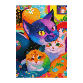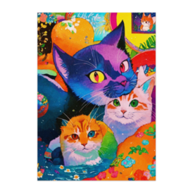 ポスター - B2この商品はpixivFACTORYで作られた商品です。サンプル画像は完成イメージのため、実物と異なる場合があります。 幻想的な色彩の中に描かれた3匹の猫たち。ブルーやオレンジのグラデーションが美しく調和し、まるで夢の中のワンシーンのよう。見ているだけで心が温まる癒しのポスターです。