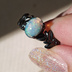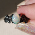 送料込み マレフィセントなリーフ 8mm ピンファイア オパール 幻想カラー ゴシックデザイン リング 指輪