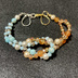 シバレル&アッチーナをイメージしたカラーの羽織紐を作りました! この羽織紐の形である「本結び」「真結び」。 両端が繋がっていれば決して解けません。 左右を引けば引くほど結び目が強まるので、一度結ぶとほどけにくいことから「一度きり、二度と繰り返さない」といった意味合いが込められており、何度もない贈り物に用いられます。 まさに婚姻した2人を表す結び方です。 今回使用した石↓ アッチーナ カーネリアン、紅玉髄(べにぎょくずい) 石言葉:成功、勝利、友情、勇気 「幸運を呼ぶ石」「指導者の石」とも呼ばれ、 目標に向かうためのエネルギーを高め、 問題を現実的に解決し、成功に導く力を引き出すと言われております。 シバレル:ターコイズ、トルコ石(とるこいし) 石言葉:潜在能力の開花、集中力、不思議、旅の安全、成功 この鮮やかなブルーの石は、気持ちを穏やかに落ち着かせ、人間関係を円滑化し人同士の絆を強めてくれる、「人と人をつなぐ石」という意味もあります。 羽織の他にもカーディガンなどのアウター、スカーフにも使用で来ます。バッグチャームとしてもオシャレに使用出来ます。 〈ご注意〉 テグスの処理等、専用の接着剤を使ってできるだけ頑丈に制作しておりますが、過度な力が加わると破損の原因となってしまいますのでお気をつけ下さい。 ハンドメイド作品の為、丁寧さを心掛けておりますが、どうしても個体差が出てしまいます。 それらの点をハンドメイドの特徴としてご理解いただいた上でご検討下さいますよう、どうぞよろしくお願いいたします。