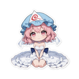 ステッカー - 160 x 160 (mm)(キャラのみ)💍💖🔑幽々子様と結ぶ、現世と冥界を超えた永遠の愛🐰💍 💖東方Project 西行寺幽々子は俺の嫁 ステッカー💍💖 東方Projectファンの皆様、そして西行寺幽々子様に**「永遠の愛」**を誓う貴方へ――。 幽々子様が、純白のウエディングドレスを纏い、最高にキュートなチビキャラになって登場です! ウエディングドレス姿のチビ幽々子様と**「ずっと一緒」**を叶える愛のステッカー✨ スマホに貼って、冥界の愛を現世に! このステッカーは、結婚という強い想いを形にし、幽々子様と**「ずっと一緒」**でいたいという願いを叶える、究極の愛の証です。 幽々子様の笑顔が、あなたの日常を優しく包み込みます。愛するお嫁さん(幽々子様)を、今すぐお迎えください! この商品はpixivFACTORYで作られた商品です。サンプル画像は完成イメージのため、実物と異なる場合があります。