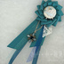 二人展「抽斗の中の雑貨展」展示作品 イラスト作家・長月たまみさんとのコラボレーション作品です。 長月さんの創作作品「ハロウィンガールズ」作中に登場する3人の少女をイメージして、ロゼットに仕立てました。 コラボ絵本はこちらからどうぞ↓ https://booth.pm/ja/items/7543036 こちらは〈ふぅ〉ちゃんのロゼットです。 凛とした美しさや、芯のあるまっすぐなイメージを刺繍のデザインに落とし込みました。 水面のきらめきや直線、鳥の翼等を幾何学模様で表現しています。 中央に下がるパーツはヴィンテージのスワロフスキーモチーフを使用しています。 特別な日の装いに、また日常で楽しむアートとしてコラボ作品をお楽しみください。 〈サイズ〉 最大幅 7㎝ 中央刺繍部 3.1㎝ テール長さ 14㎝(最長部) 〈素材〉 ポリエステル・金属・綿・ガラス・プラスチック 等 〈その他ご留意いただきたいこと〉 ・全ての工程を手作業で制作しています。この為、ひとつひとつ個体差がございます。 ・制作環境に喫煙者、ペットはおりません。 ・実際の色味に近づけ撮影しておりますが、差異があります事ご了承くださいませ。 ・お洗濯はお避けください。 ・デザイン上、先端が細く尖った箇所がございます。お取り扱いにお気をつけください。
