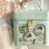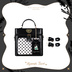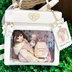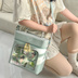 本体サイズ:幅25 × 高さ25 × 厚さ10cm 前面クリア部:幅20 × 高さ15.2 × 厚さ7cm 仕切板:幅23 × 高さ17.2cm カードケース:幅7.2 × 高さ12cm (3インチカード+チェキサイズ収納可能) 重量:本体約0.64kg(付属品含む約0.99kg) 付属品: 仕切板 ロングショルダーベルト×2 カードケース付きチャーム