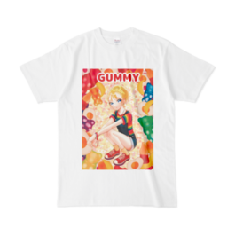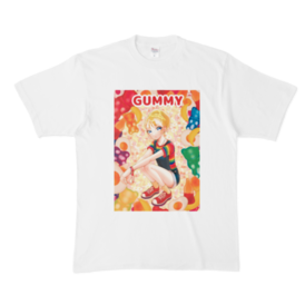 Tシャツ - XL - 白グミに囲まれた女の子の絵のTシャツです。 着るだけでハッピーになれそう✨️ ぜひこれを着てグミを食べてね💗 私も着てます。 この商品はpixivFACTORYで作られた商品です。サンプル画像は完成イメージのため、実物と異なる場合があります。