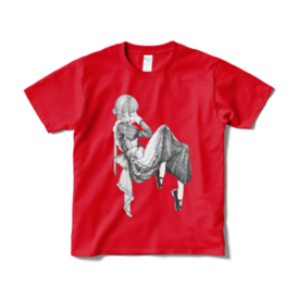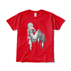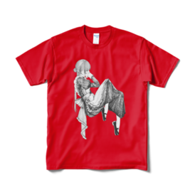 Tシャツ(短納期) - XL - レッド【 Maid×Collection×release -ROROICHI個展- 】の出品作品、 「憂いの午後は心潜める」のTシャツです。 サイズ:S、M、L、XL カラー:白、黒、ネイビー、赤 ------------------- この商品はpixivFACTORYで作られた商品です。 サンプル画像は完成イメージのため、実物と異なる場合があります。