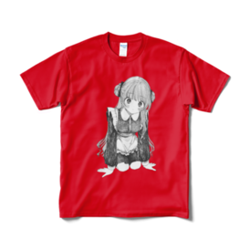 Tシャツ(短納期) - XL - レッド【 Maid×Collection×release -ROROICHI個展- 】の出品作品、 「花開く予感」のTシャツです。 サイズ:S、M、L、XL カラー:白、黒、ネイビー、赤 ※「あなたのイチオシ!」という文字は、【白Tシャツのみ】にプリントされています。 他のカラーのTシャツはイラストのみになります。 ------------------- この商品はpixivFACTORYで作られた商品です。 サンプル画像は完成イメージのため、実物と異なる場合があります。