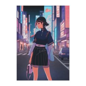 ポスター - B2この商品はpixivFACTORYで作られた商品です。サンプル画像は完成イメージのため、実物と異なる場合があります。 Neo-Ukiyo Elegance シリーズより。 ネオン輝く東京の夜、和の意匠を纏った女性の姿を描く。 伝統と未来が交わる、鮮やかな現代の浮世絵風ポスター。