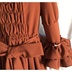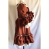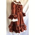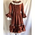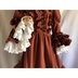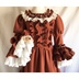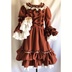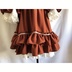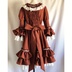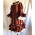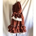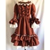 赤を基調にしたドレスワンピースでございます。アンティーク風に仕上げてみました。 後ろにゴムを縫い付けてシャーリングしています。前立てにフリルと飾りボタンをつけております。 ファスナーはつけておりませんので下からかぶって着用するタイプのワンピースでございます。 取り外し可能のバックリボン付きです。 身頃に綿ローン生地の裏地をつけております。 スカート部分に綿レースフリル付きのペチコート、姫袖部分にペチコートのように白い裏地をつけております。 袖、裾にフリルをつけておりますのでボリュームがあります。着用するとスカート、袖口部分がふわふわ揺れます。 【サイズ】13号サイズ 着丈:107cm バスト:88cm 袖丈:56cm 肩幅:42cm ペチコート丈:67cm 【素材】 表生地:ポリエステル100% 身頃裏地:綿100% ペチコート生地:綿100% レース:綿100% 発送の際は折りたたんで発送いたしますので折りたたみジワのご了承をお願いいたします。 洗濯の際はネットに入れてからのご洗濯、また手洗いを推奨いたします。また柔軟剤の使用もご検討いただけたらと思います。