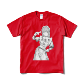 Tシャツ(短納期) - XL - レッド【 Maid×Collection×release -ROROICHI個展- 】の出品作品、 「推しにしたまえ!」のTシャツです。 サイズ:S、M、L、XL カラー:白、黒、ネイビー、赤 ※「あなたのイチオシ!」という文字は、【白Tシャツのみ】にプリントされています。他のカラーのTシャツはイラストのみになります。 ------------------- この商品はpixivFACTORYで作られた商品です。 サンプル画像は完成イメージのため、実物と異なる場合があります。