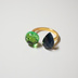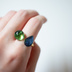 推し色★推しカプカラー★ 天然石 ブルータイガーアイ クリスタル×グリーンアンバーのフォークリング【フリーサイズ】