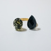 美しいブルータイガーアイを台座にして、 その上にカット入りのクリスタル(天然水晶)を重ねたペアシェイプの石と、 バルト海沿岸で採れるポーランド産の天然琥珀・バルティックアンバーを組み合わせた指輪です。 ブルータイガーアイ×クリスタルには色に深みがあり、 ブラックカラーアンバーはクラックが入っていて乱反射する煌きがより華やかな印象になっています。 個性的で表情豊かなフォークリングです。 【リングのサイズ】13号(フリーサイズ) ※指のサイズに合わせて+ー2号程度の調整が可能 【リングの素材】真鍮 【石の種類】ブルータイガーアイ×ブラックカラーアンバー 【石のサイズ】12×8mm・10×10mm ※ 天然石は1つ1つ色や模様が異なります。ご理解の上でご購入ください。