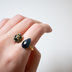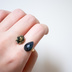 推し色★推しカプカラー★ 天然石 ブルータイガーアイ×ブラックアンバーのフォークリング【フリーサイズ】指輪
