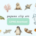 やわらかな水彩タッチで描いた、アンティーク調の可愛い「水族館の生き物」クリップアートです。 イルカやクラゲ、ペンギンなど人気の海の仲間たちを、淡い色合いとくすみパステルで優しく表現しました。 どんなデザインにもなじむ落ち着いた風合いで、ナチュラルで上品な雰囲気を演出します。 ⸻ 🖼セット内容 全12種類(PNG形式・透過背景) 1. イルカ 2. クラゲ 3. ペンギン 4. ウミガメ 5. チンアナゴ 6. タツノオトシゴ 7. マンタ(エイ) 8. サメ(小型) 9. ラッコ 10. アザラシ 11. カクレクマノミ 12. サンゴ ⸻ 🌊おすすめの使い方 ・CanvaやProcreateでのデザイン制作 ・手帳・ジャーナル・スクラップブック素材 ・SNS投稿やYouTubeサムネイル ・お店のPOP、名刺、カードデザイン ・デジタルペーパーやステッカー制作 ⸻ 📁ファイル形式 ・PNG(透過背景) ・高解像度/即ダウンロード可 ⸻ 💡ポイント ✔ 水彩のにじみや淡い色合いを再現した手描き風タッチ ✔ アンティーク調で統一された上品なシリーズデザイン ✔ そのまま使っても、組み合わせても可愛い ⸻ 🌼海の世界を優しく彩る、水彩アンティークなクリップアートシリーズです。 あなたのデザインに、穏やかな癒しと可愛らしさを添えてみませんか?