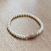 内周 : 15 cm 素材 : 天然石/淡水パール/ビーズ/シルバーフィルド/ゴム 静かな月の光を閉じ込めたような12mmのピンクムーンストーン。 肌になじむようなピンクベージュの色合いが、そっと手元に溶け込みます。 その柔らかなトーンに淡水パールを組み合わせ、優しい印象に仕上げました。 可愛らしさと上品さを兼ね備えた、日常にも特別な日にも寄り添うアクセサリーです。 ブレスレットは透明ゴムを使用しており、内周15cmになっています。 【ピンクムーンストーン】 ピンクムーンストーンは、古代から「月の光を宿す石」として愛され、ローマでは月の女神の加護を受ける石、インドでは神聖なお守りとして大切にされてきました。 この石は、心を落ち着かせ、愛情や思いやりを育むといわれ、感情のバランスを整えながら、日常に穏やかな癒しをもたらしてくれます。 *撮影時には可能な限り実際の色味を再現するよう努めておりますが、完璧ではない場合がございますことをご了承ください。 *返品はお受けできません。 *納品書、領収書は発行いたしません。