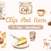 大人可愛いカフェシリーズ|水彩風クリップアート8点セット PNG(背景透過)