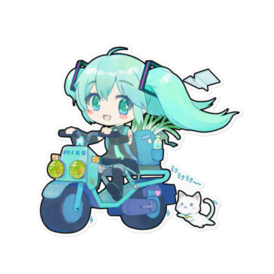 ミクちゃん&バイクステッカーBタイプ(ホワイト)